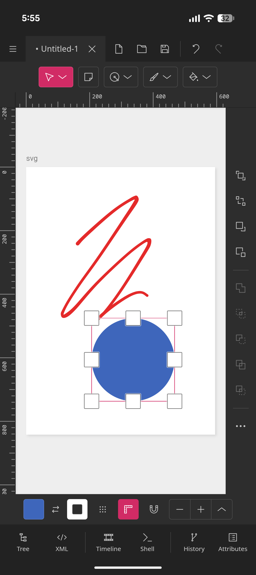 All panels are now rendered within drawers on mobile, to make them easily accessible through the new bottom navigation bar. The document tabs are hidden under a dropdown, and the menubar is also collapsed under a hamburger icon button. An ellipsis button was also added at the bottom of the object toolbar, that triggers the context menu.